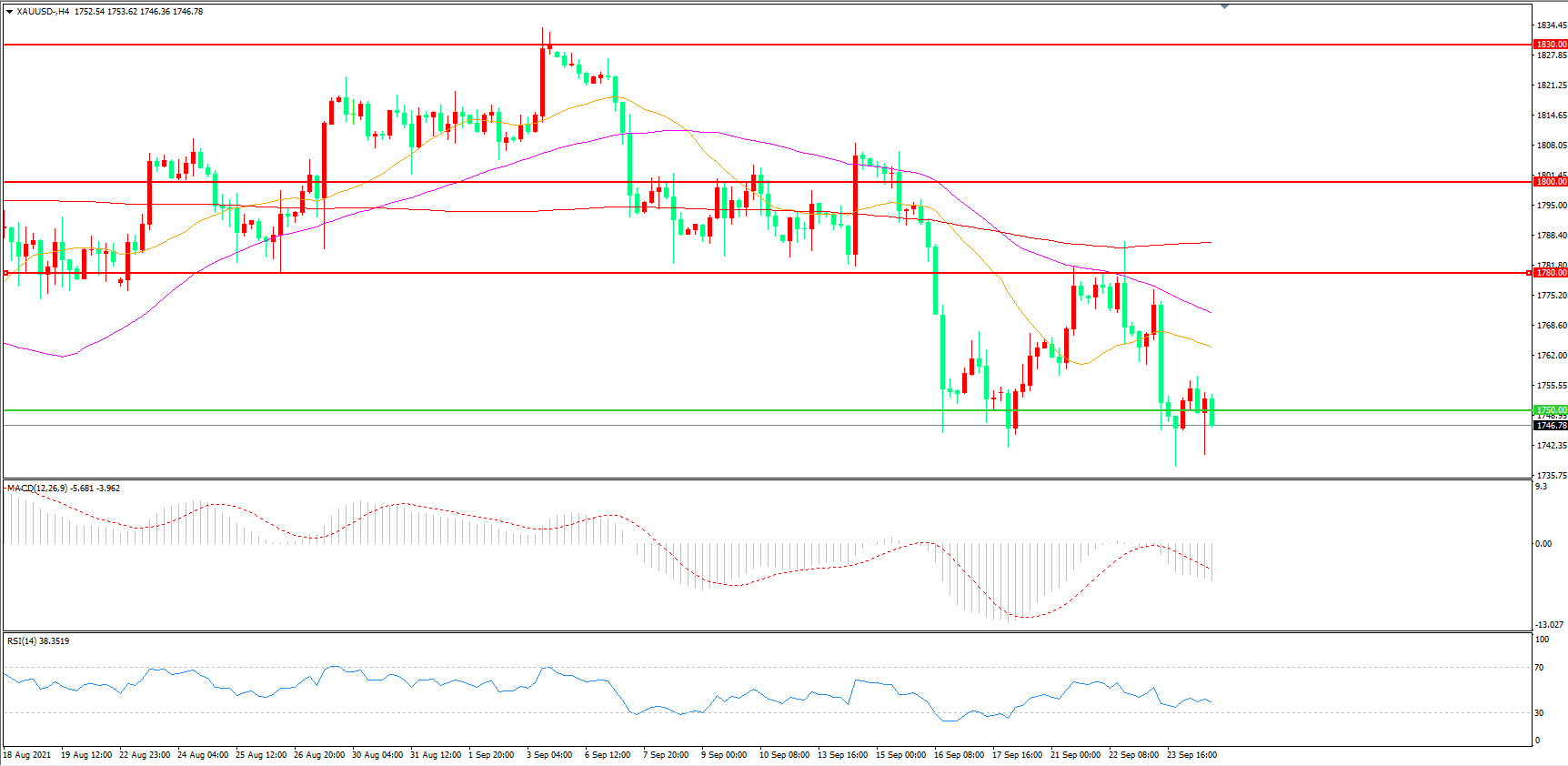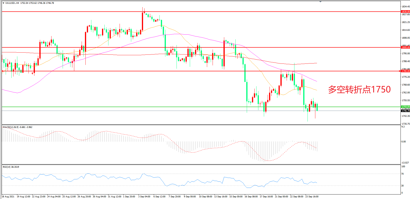 交易策略:在1750.00之下看跌,目标1720.00 1700.00
