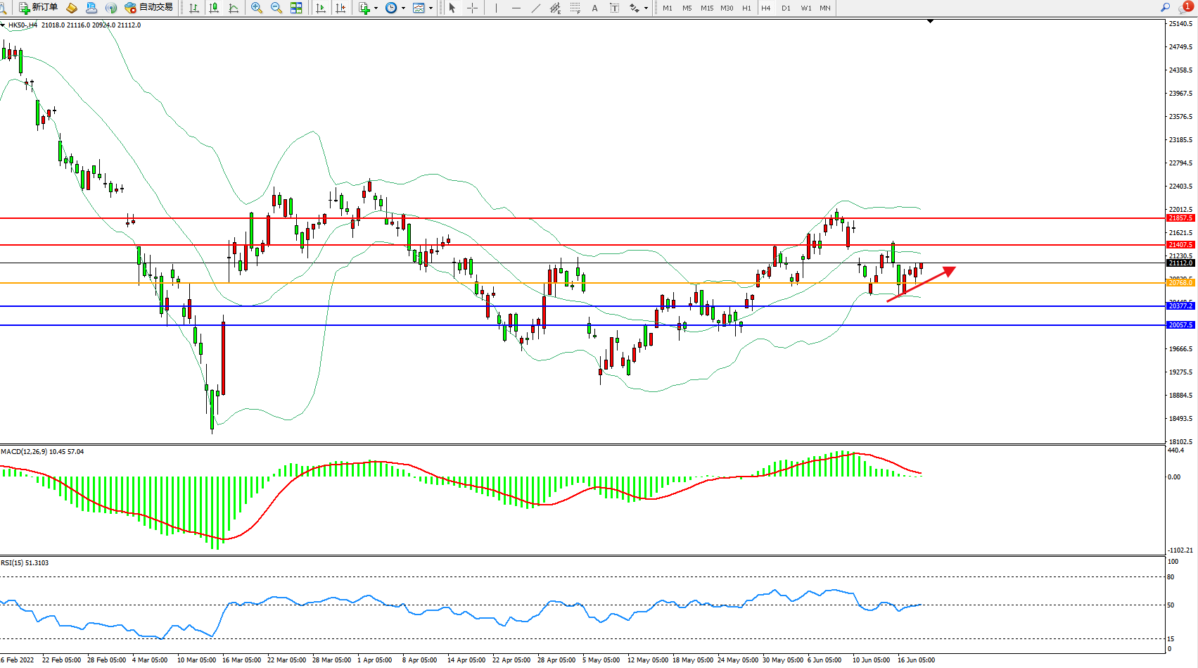 恒指HK50 4小时图