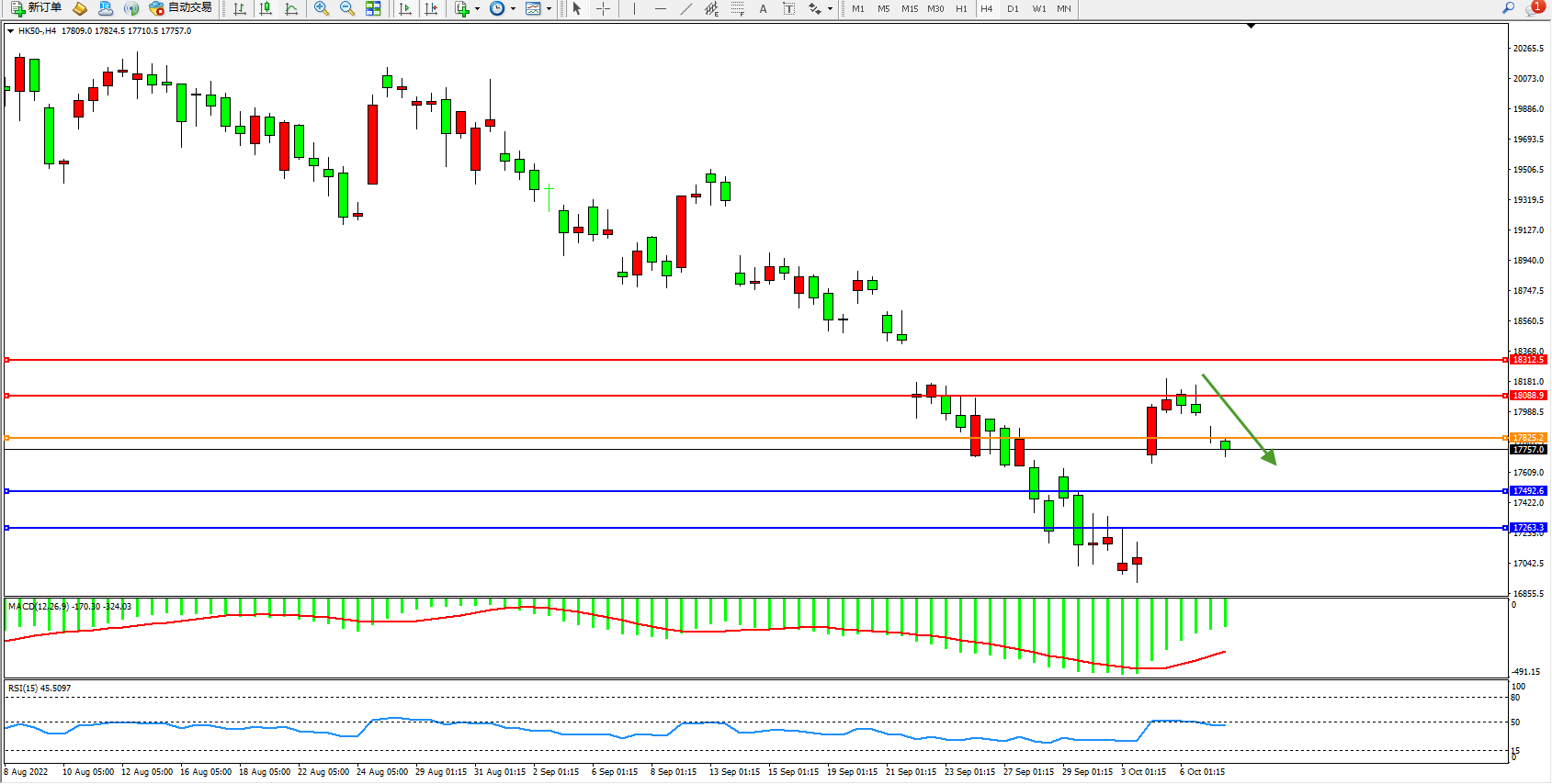 恒指HK50 4小时图