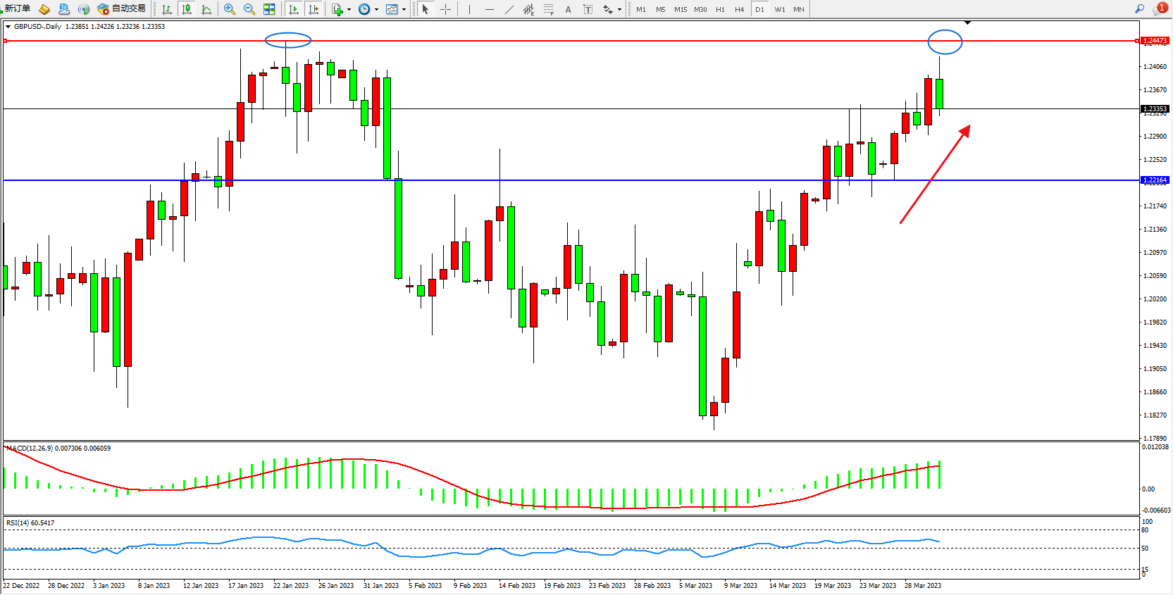 英镑兑美元日K线图显示: