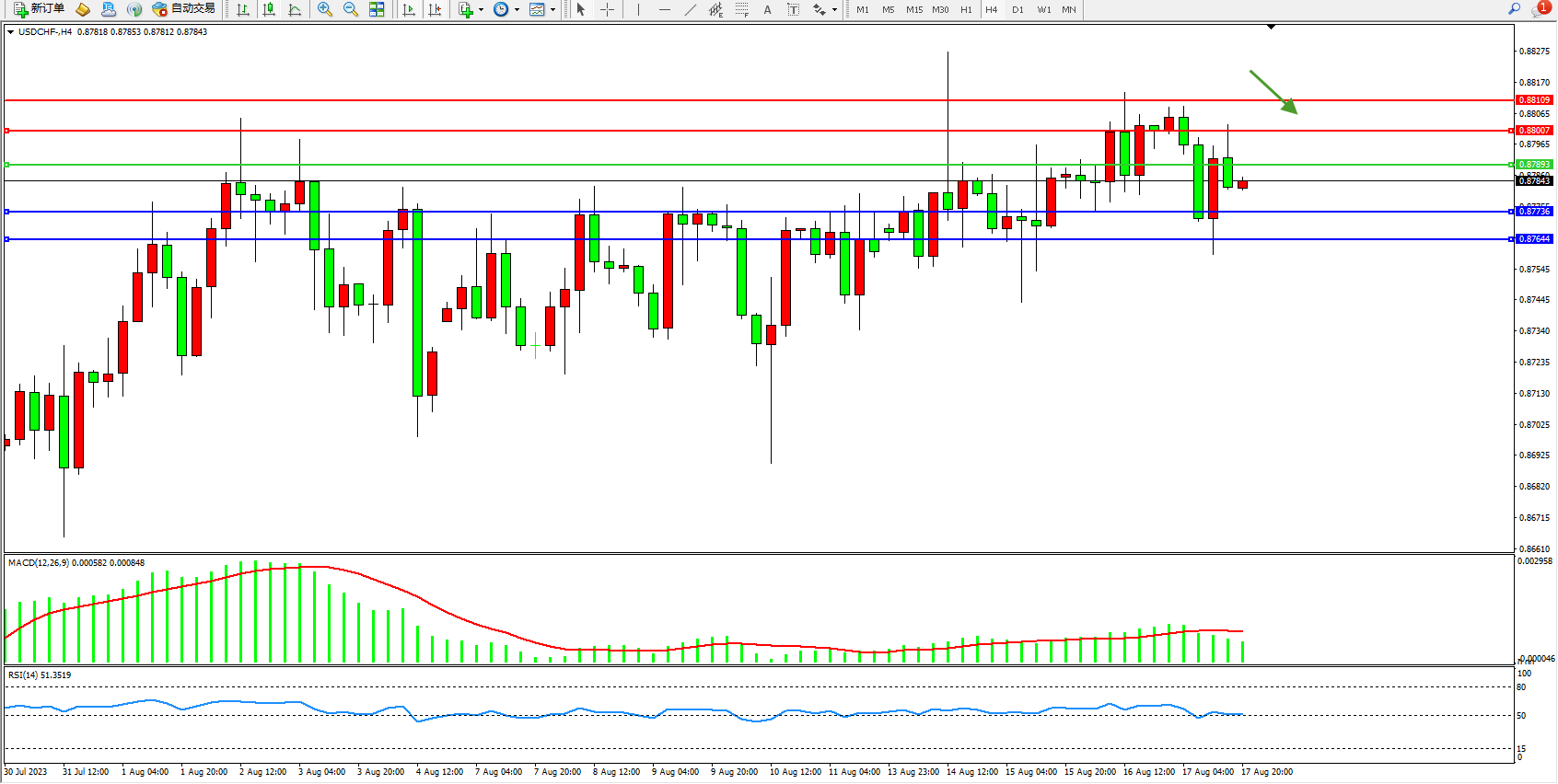 交易策略:0.87893下方看跌,目标0.87736  0.87644
