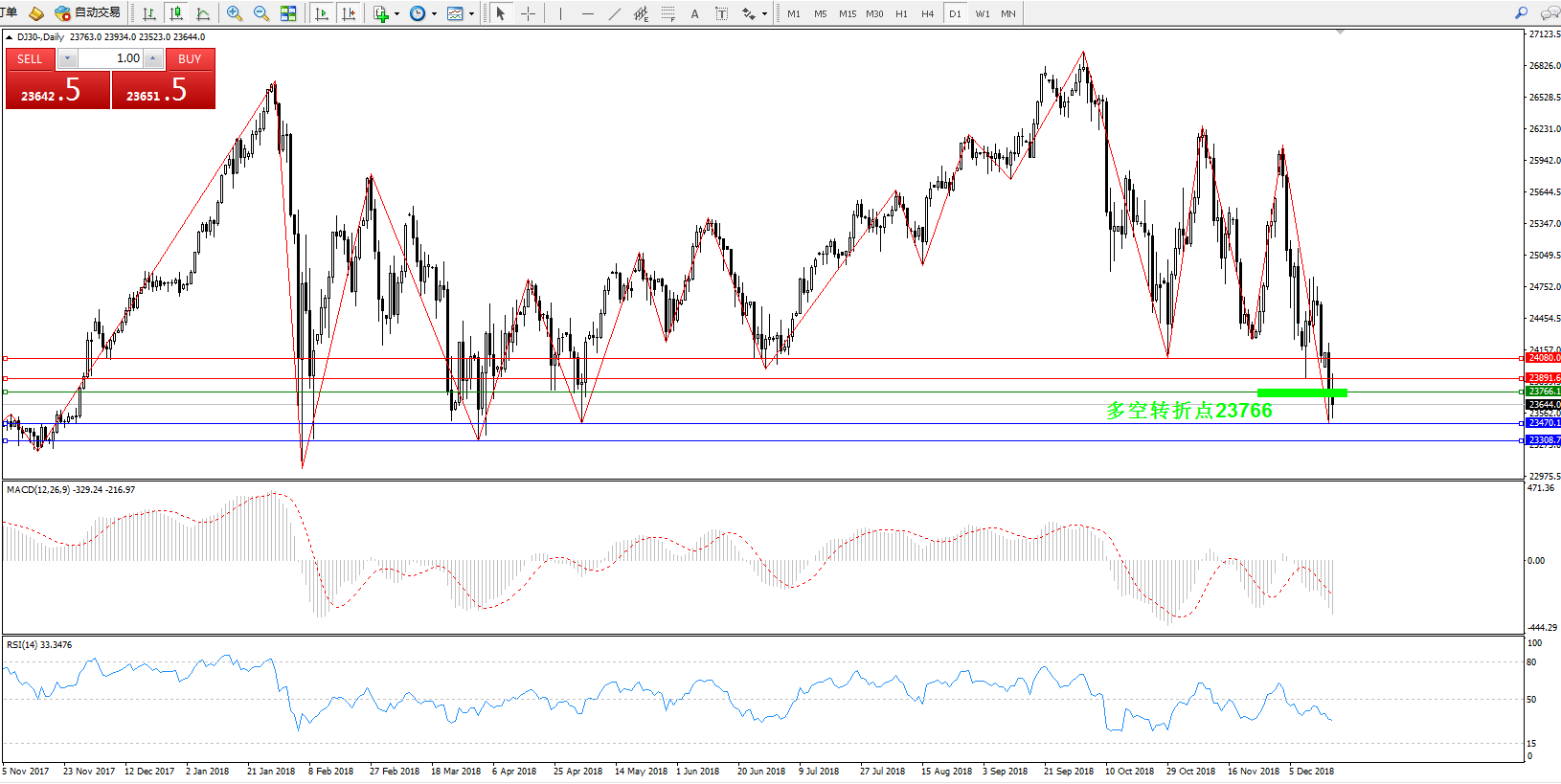 道琼斯指数DJ30—— 日K线图显示: